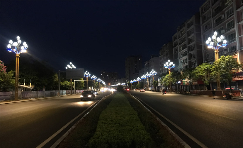 華體照明根據業主方需求,為業主方量身定制擁有南充“綢都”文化特色的絲綢玉蘭400余套,絲綢玉蘭在滿足城市道路照明的同時,配以頂部裝飾光源,兼顧城市景觀照明,極大地提升了南充城市夜景形象。