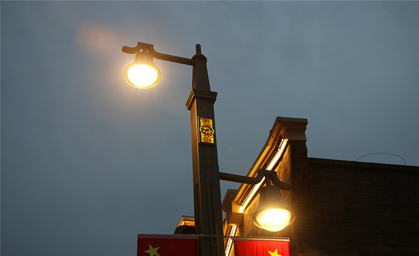 華體科技依托自身強大的設計能力,為業主方量身定制了具有多桿合一功能的民國風情文化路燈,讓路燈也成為棗子巷特色街區的重要組成部分。