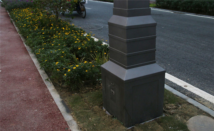 而燈桿底座的石柱造型,同樣是仿照民國時期的石柱進行設計呈現,讓路燈呈現民國雕塑的形象。