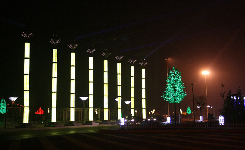 本次景觀照明范圍為新建的四個中心綠島、人造景觀、綠化景觀、人造雕塑和景石、太白路以及新建道路的功能照明。