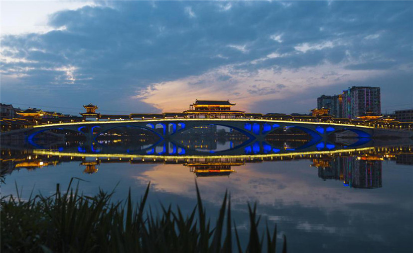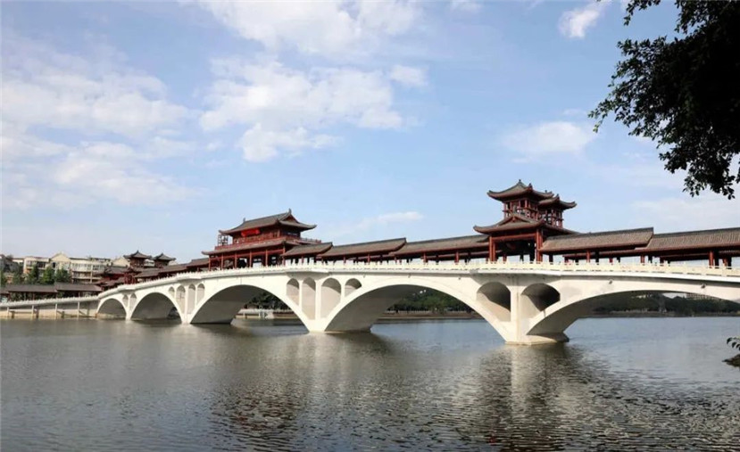 它不僅具備連通南河兩岸、方便市民通行的實用功能,其中植入的大量歷史文化元素,更讓它成為展示新津歷史文化的窗口,這也讓五津廊橋成為新津的文化地標。