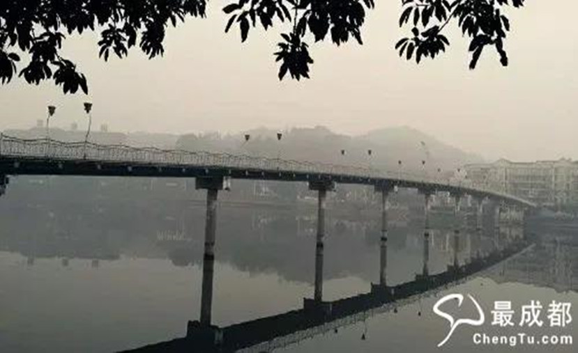 在離五岔子大橋不遠的成都市新津縣,一座古韻風味的人行橋,也成為了一座網紅橋。