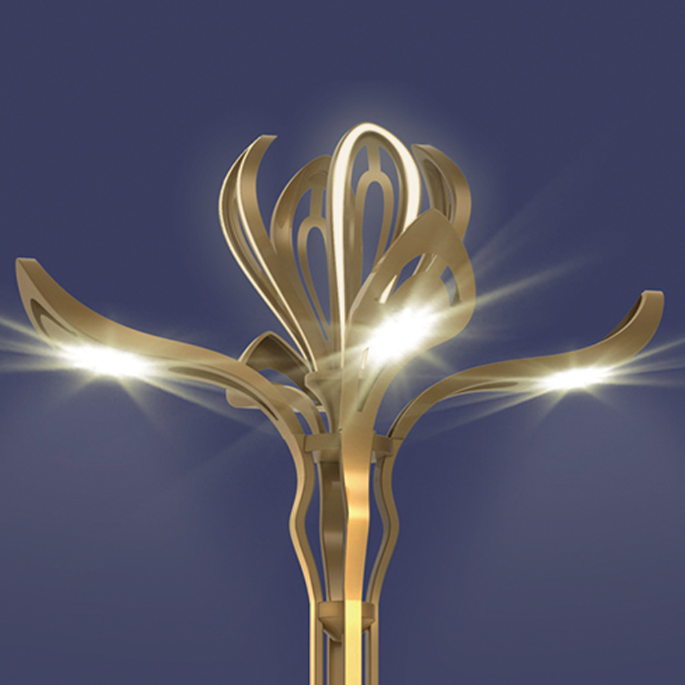 改變了以往單一的花燈結構,而是將花瓣根據不同的需求予以相應組合,在花瓣中鑲嵌燈帶,使整燈在夜晚中也能給城市增添光彩;