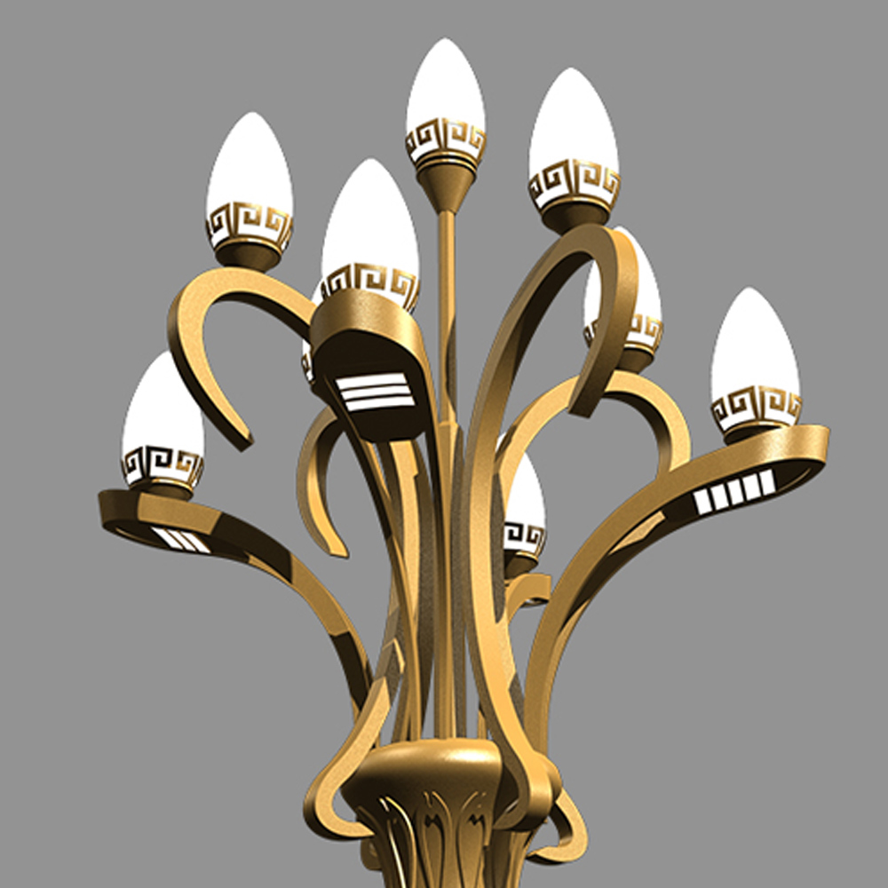 該燈具是傳統道路照明的革新與創新,有濃厚的地域文化特色,顛覆的之前一般燈具的造型單一與無文化特色,在光源方面通過燈具采用設計以綠色照明為主要思路,使該燈具不僅注重人心理上的感受而且綠色環保、節能。