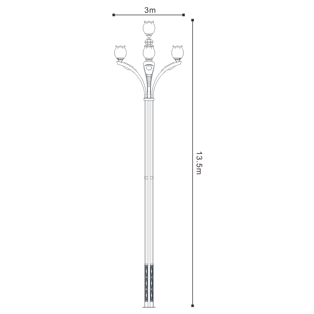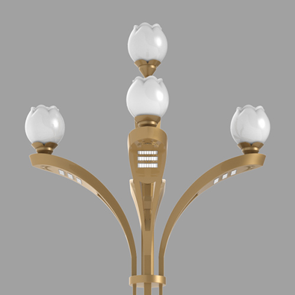 該款燈可以在原有景觀照明基礎上,增加了功能照明,使功能照明和景觀照明完美結合。可將LED光源巧妙的配置于戶外文化定制燈具中,替代傳統鈉燈及節能燈光源,使用革命性創新,在不影響使用及美觀的情況下,降低該類裝飾性景觀路燈的功率密度,切可在桿體內側加裝華體單燈智能照明管理系統。