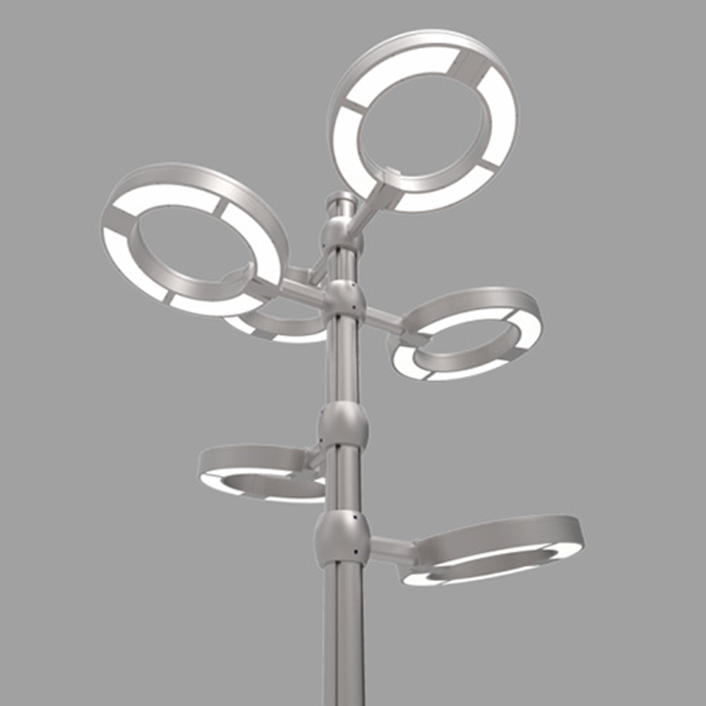 簡潔、利落的外觀,配以炫麗的燈臂,適用于河濱步道,營造出休閑愜意之感。