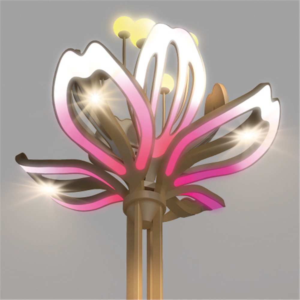 設計以五彩繽紛的花朵,襯托城市的華麗。提升城市品位,營造絢麗多姿的夜間景觀照明。