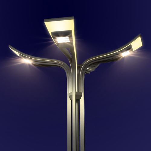 燈型設(shè)計以簡潔流暢的線條為設(shè)計元素,結(jié)合現(xiàn)代簡潔的設(shè)計手法,提取流暢的線條,燈臂如展翼翱翔的翅膀,寓意城市蓬勃發(fā)展、日甚一日。